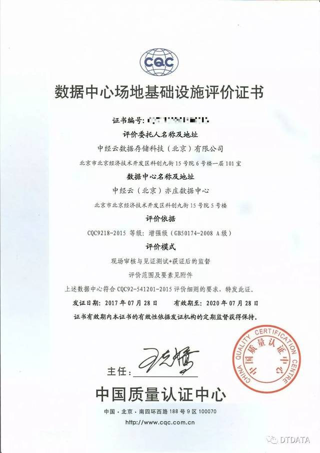 中經云北京亦莊數據中心于2017年7月通過中國質量認證中心的評測認證,獲得數據中心場地基礎設施A級認證,是國內第13家通過該級別認證的數據中心。